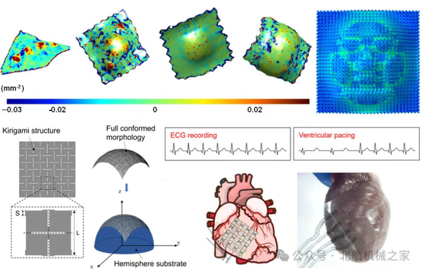 针对复杂器官曲面共形问题,设计了多功能自适应可共形生物传感与柔性贴片,应用于心脏监测与功能修复等。在柔性电子器件设计、生物界面优化和智能医疗系统集成等方面具有巨大潜在应用。