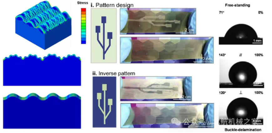 2)屈曲驱动的可重构微纳表面设计及应用