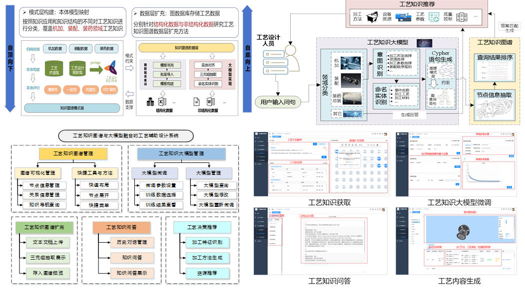 针对航空航天复杂产品工艺设计和生产过程知识范围广、内容繁杂,多源异构的工艺经验和知识资源缺乏统一组织管理、难以有效共享更新等问题,研究了基于数据挖掘的多源异构工艺知识获取方法,构建了基于知识图谱的工艺知识库管理方法,突破了大模型与知识图谱融合驱动的工艺知识问答、工艺知识感知推送以及工艺内容智能生成技术,实现了复杂产品工艺设计知识的有效挖掘、管理与智能化应用。
