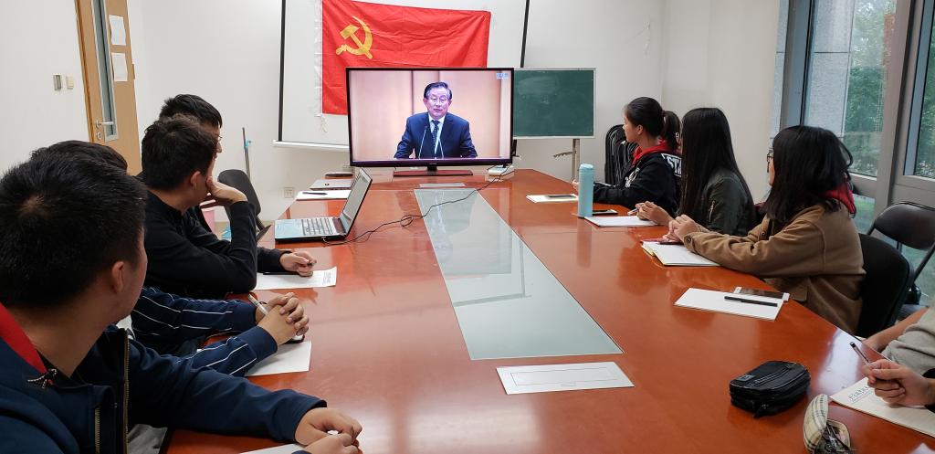 在各班团支书的号召与带领下,自行组成观看学习小组,在教室、宿舍、图书馆等地积极收看报告会,积极讨论报告内容,深刻领悟报告精神。