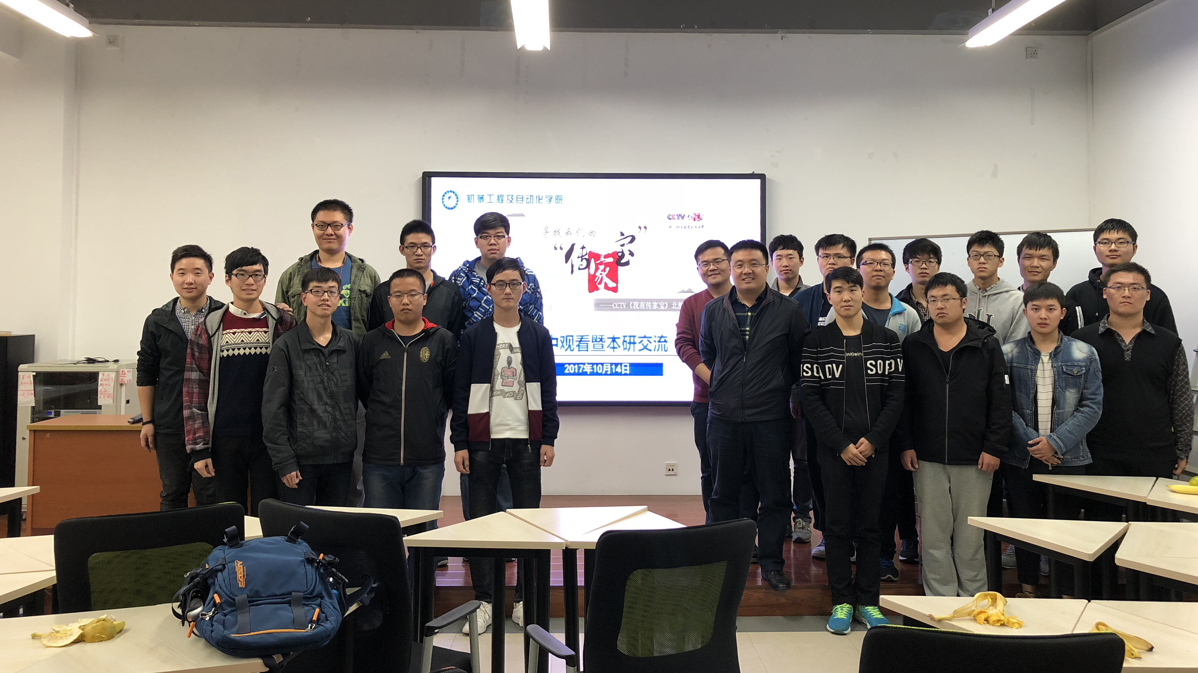 在党的十九大即将胜利召开和我校即将迎来65华诞之际,为了进一步让学生涵养“空天报国,敢为人先”的北航精神和“开放包容,务实担当”的北航文化,10月14日下午,成人直播在B506组织本研学生骨干集中观看央视《我有传家宝》北航篇。研究生指导主任从保强老师、本科生研究生辅导员一起参加了本次活动。