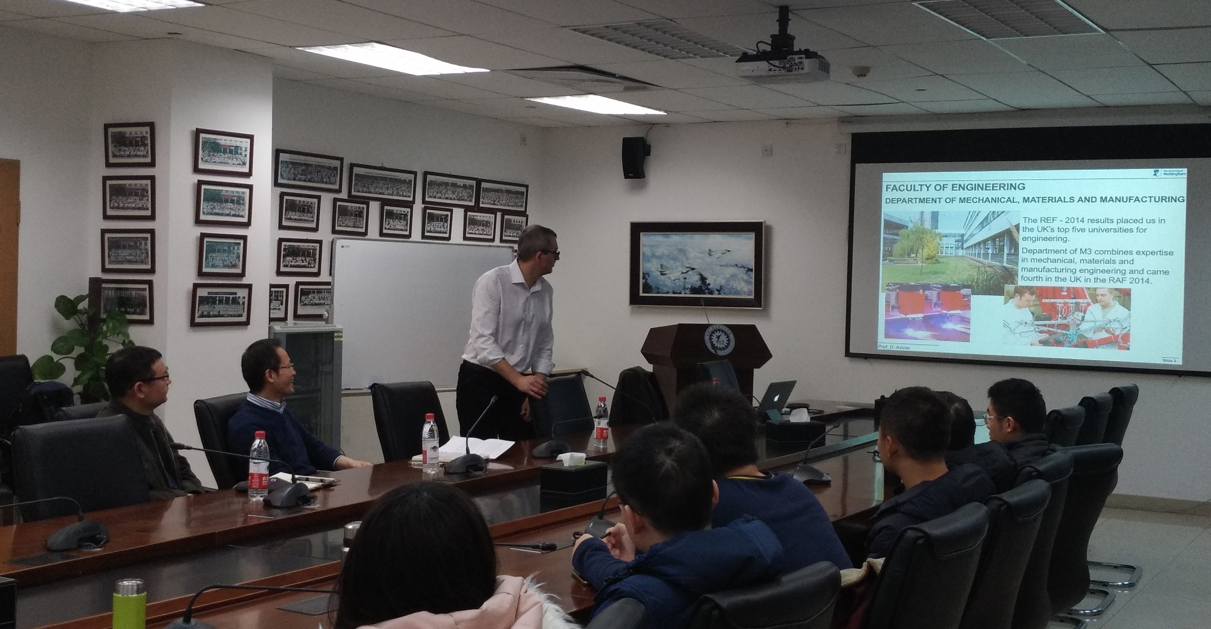 1月4日上午,来自英国诺丁汉大学制造工程学的Dragos Axinte教授做客航空制造大讲堂,在新主楼A849启先会议室为成人直播师生进行了一次题为《“Portable factories” for repair and maintenance of high-value assets: Another way to conceptualise robotic systems》的学术报告。