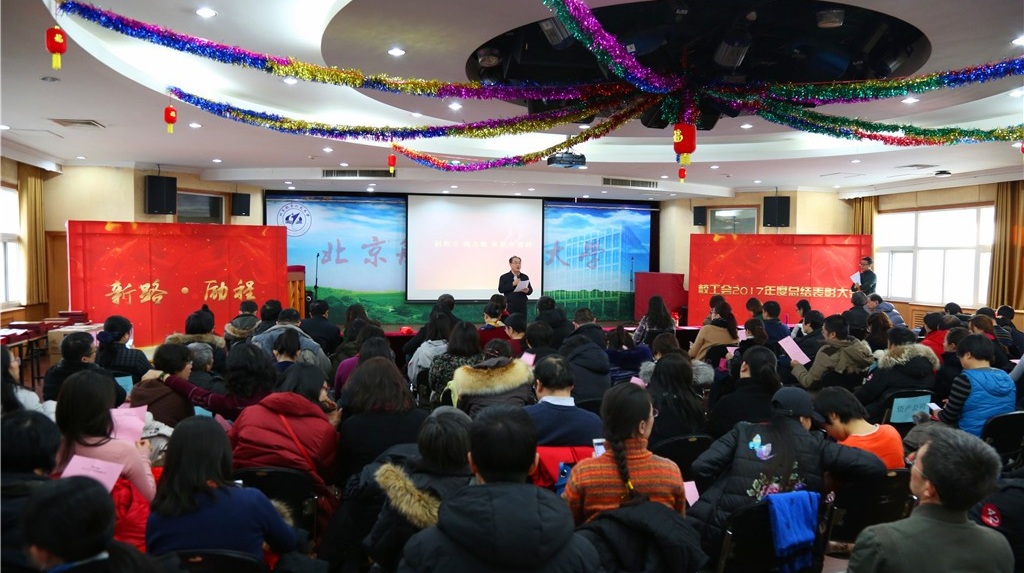 1月12日,校工会举行“新路 励程”2017年度总结表彰大会,魏志敏副校长,第十二届工会委员会委员,第八届教职工代表大会常设主席团成员,各单位分党委书记、工会主席、工会委员、工会工作先进个人获奖代表、相关职能部处领导共200人参出席了本次大会。首先校工会精心制作“新路励程,共迎2018”作为开场视频,营造了热烈的气氛。紧接着魏志敏副校长向与会代表致新年贺辞。他总结,北航工会系统一项项工作的推进,一项项成绩的取得就是顺应了党中央顺应人们美好生活向往的真切回应,就是对大爱文化最有力的支撑。这其中,离不开北航党委的正确领导,离不开广大工会会员的支持配合,更离不开各位工会干部的辛勤汗水,希望广大工会干部再接再厉,在2018年中再创辉煌。