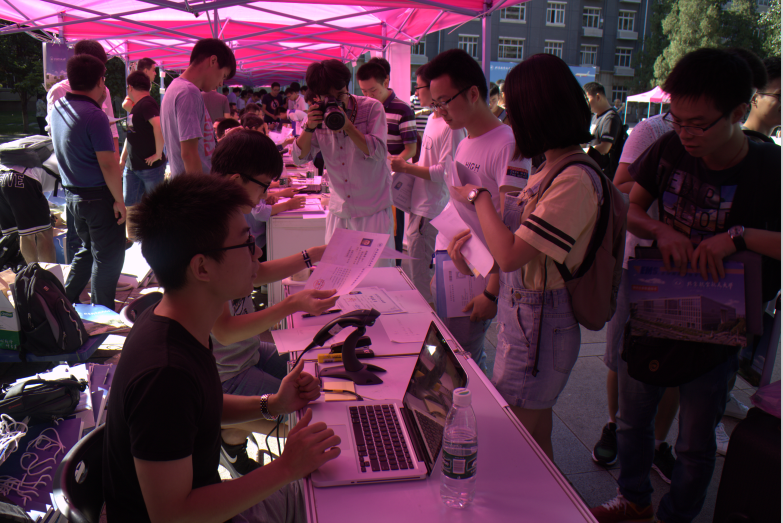 迎新通过实现了快捷高效的网络化新模式,通过暑期的网上预报名,新生凭报到单的二维码即可进行一键式扫码报到,大大简化了报到流程,并提高了报道情况的统计效率。同时,迎新志愿者还会根据预报到学生信息,一对一陪同办理各项事务,如绿色通道,一卡通,入住宿舍分配等。