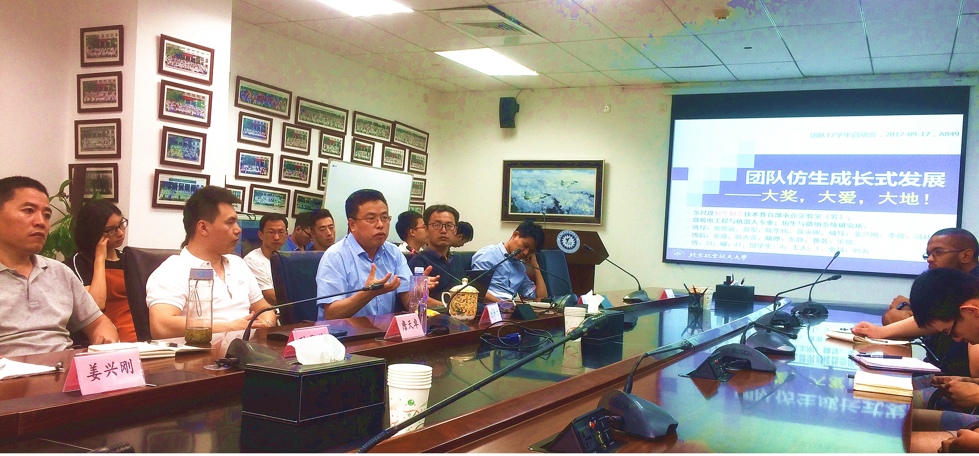 2017年9月17日上午,北航仿生与微纳系统研究所张德远、蔡军、陈华伟、蒋永刚等博导为主体的教学科研团队2017新学年团队大会在新主楼A849会议室隆重召开。