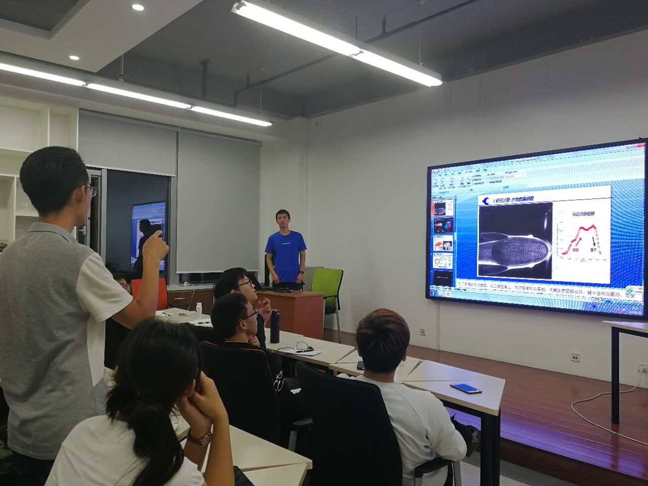 王越平首先从实验室研究方向及团队讲起,继而介绍了开展仿生鱼软体吸盘机器人研究的背景:鱼附着在鲨鱼皮表面“搭车”以降低自身能耗。王越平着重介绍了开展仿生鱼软体吸盘机器人研究过程中遭遇的难题以及解决方法。他提到,大量研读国内外与研究内容相关的文献十分重要,注重导学关系与老师和同学及时有效的沟通对研究工作也举足轻重。最后,王越平还向在座同学分享了自己的科研经历与心得。诚实、认真、努力钻研的学术态度是搞好科学研究的第一步。