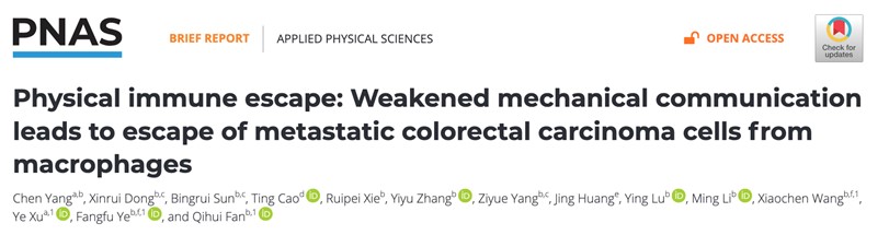 物理研究所叶方富研究员、樊琪慧副研究员,以及国科温州研究院王晓晨副研究员合作,构建了一种基于I型胶原蛋白水凝胶的准三维(quasi-3D)体外共培养模型,深入探究了巨噬细胞对两种具有不同转移潜能的结直肠癌细胞(CRC)的追踪响应。相关工作以“Physical immune escape: Weakened mechanical communication leads to escape of metastatic colorectal carcinoma cells from macrophages”为题发表在《美国国家科成人直播