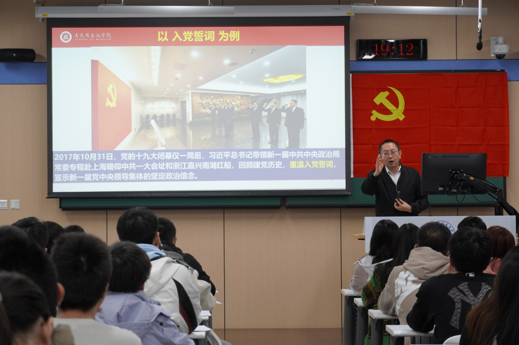 党委书记高宁老师以80字入党誓词为切入点,深刻阐释了“忠诚”的核心内涵,指出入党誓词是党员对党组织的庄严承诺,更是党性修养的起点与基准。授课中,高老师以历史与现实为脉络,通过革命年代西北根据地创始人刘志丹顾全大局、避免党内分裂的纯粹忠诚,以及新时代李文亮医生坚守抗疫一线的责任担当等鲜活案例,让抽象的忠诚品格变得具体可感。他围绕“公私二字是衡量党性强弱的根本尺度”,详解“公私分明、先公后私、公而忘私、大公无私”的递进内涵,引导学员将党史与党章学习深度融合,在理性认知中坚定信仰,在对标榜样中锤炼党性,深刻理解“党员”二字承载的责任与使命。
