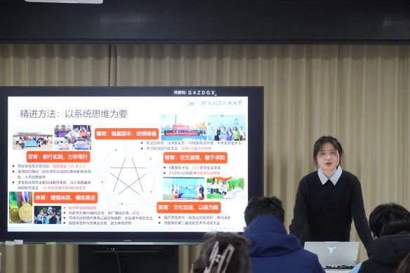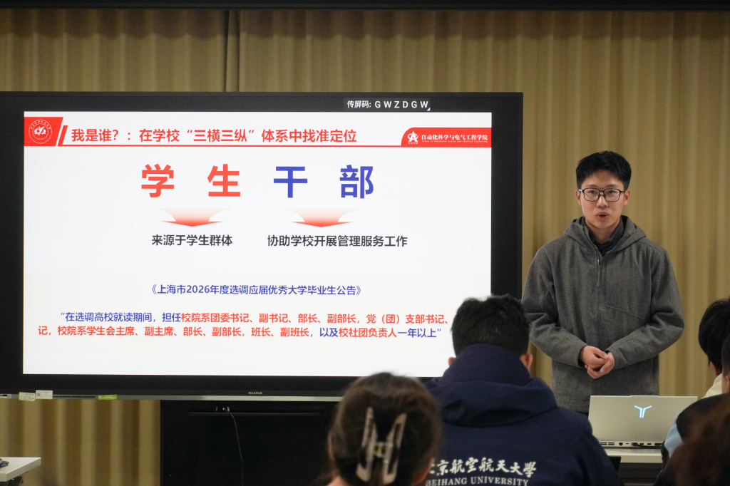 与同学的关键桥梁,要以“勇当青年排头兵”的姿态坚守初心使命,将个人成长融入集体建设大局;要精进工作方法,以“三横三纵”的系统思维统筹协调各项事务,在摸准同学需求、破解工作难题中锤炼过硬本领;要勇担育人使命,强化“主动、担当、闭环”的工作意识,做到“教育有高度、管理有力度、服务有温度”,努力成长为政治坚定、能力过硬、作风扎实的骨干力量,为学校培养全面发展的社会主义建设者和接班人筑牢基层根基。