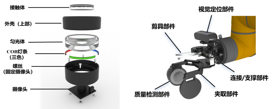 受果农触感经验的启发,牵头立项“高精度视触觉传感器”国家级大创项目,提出“COB光源结合树脂匀光体”方案,并创新引入镓铟合金反射层,显著提升成像质量。通过搭建Faster-RCNN网络,实现纹理识别准确率97.79%;运用多维力解耦算法解算力信息。经历四次迭代传感器硬件架构,最终和团队一起研制出可实现农作物无损检测与采摘的样机,完成了视触觉技术在现代农业中的初步探索。此外,基于对仿生学的兴趣,作为核心成员参与“基于传感融合的自主跨界质仿生吸附机器人”项目,负责两代鮣鱼吸盘结构设计、液态金属传感器研发与电路搭建,以及吸附状态数据处理。完成机身装配、水池测试与推力采集,并设计单目相机防水连接机构。该项目将仿生吸盘应用于两栖机器人,通过“搭便车”方式提升无人机续航。相关研究成果已合作发表于SCI 期刊,另一篇关于跨界质飞行器的成果也发表在SES Annual Technical Meeting国际会议上。