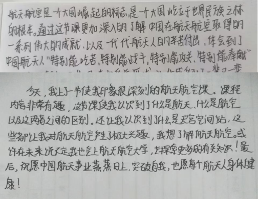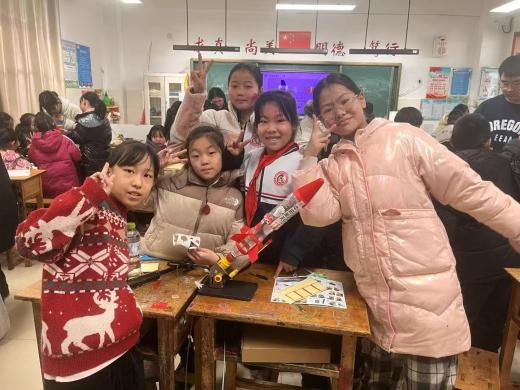 除此之外,张嘉慧同学还跟随川航e家实践队前往山东德州尚德小学,作为教务组核心成员,为同学们系统设计并讲授了航空航天科普课程与实验,寓教于乐,理论与实践相结合,在欢笑中激发孩子们对空天的向往。