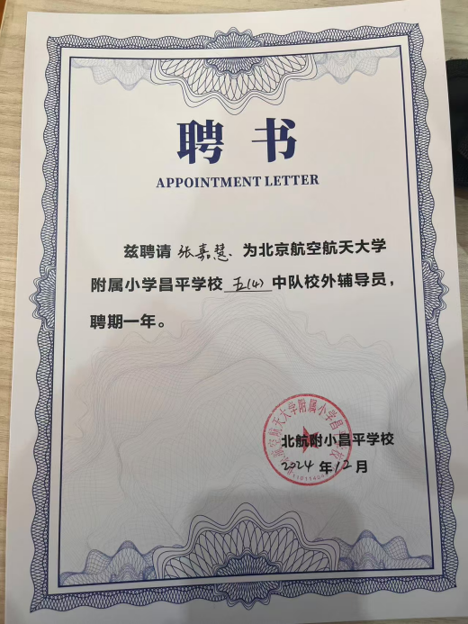 她作为北航附小昌平学校的校外辅导员,积极参与“大手拉小手”科普活动,为同学们带来航空航天专题讲座与互动答疑,在交流中传达精神,在科普中埋下向往。在一次次教学中,成为时空的摆渡人,将前辈的星辰大海,渡向下一代的梦里心间。