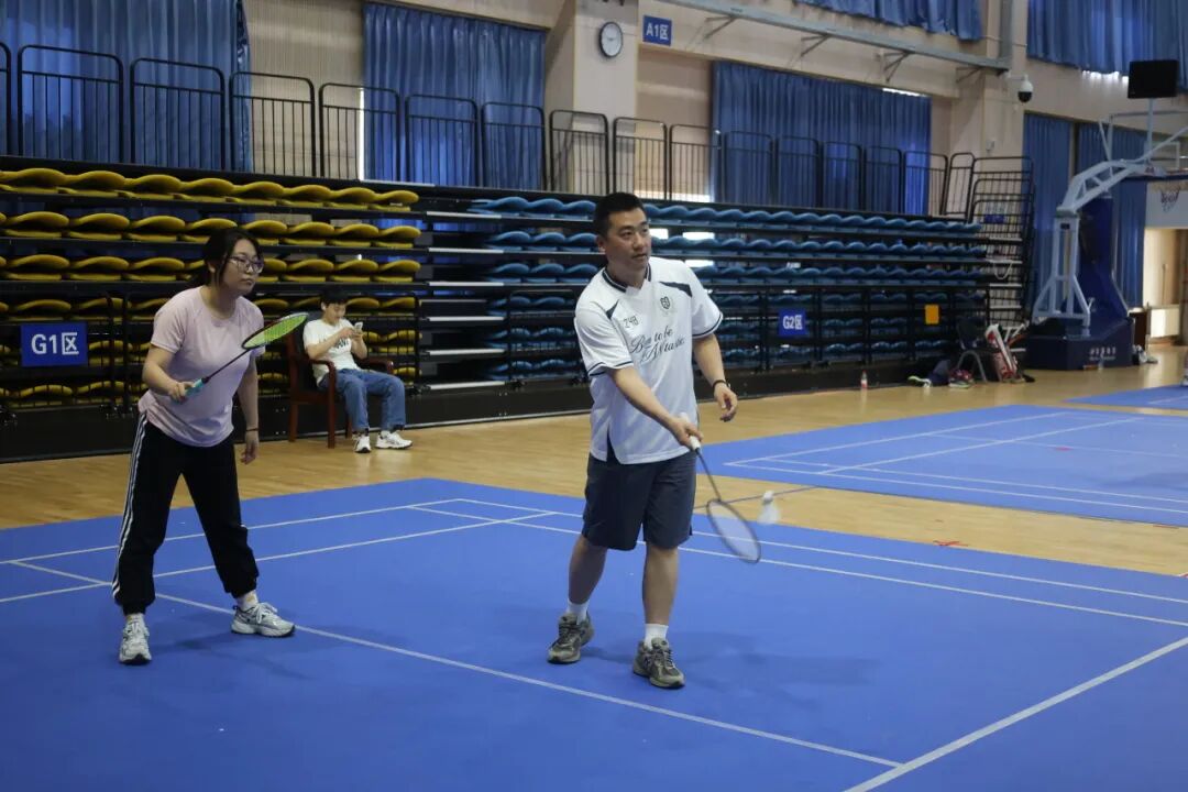 本次羽毛球赛不仅是同学们的赛场,也迎来了特别的参与者——辅导员也换上运动装备,走上球场,与同学们并肩挥拍、同台竞技。发球、起跳、扣杀,每一个动作都干脆利落;场上切磋交流,场下欢声笑语,平日里悉心陪伴的导员,此刻化身默契队友与友好对手,用汗水拉近了彼此的距离。