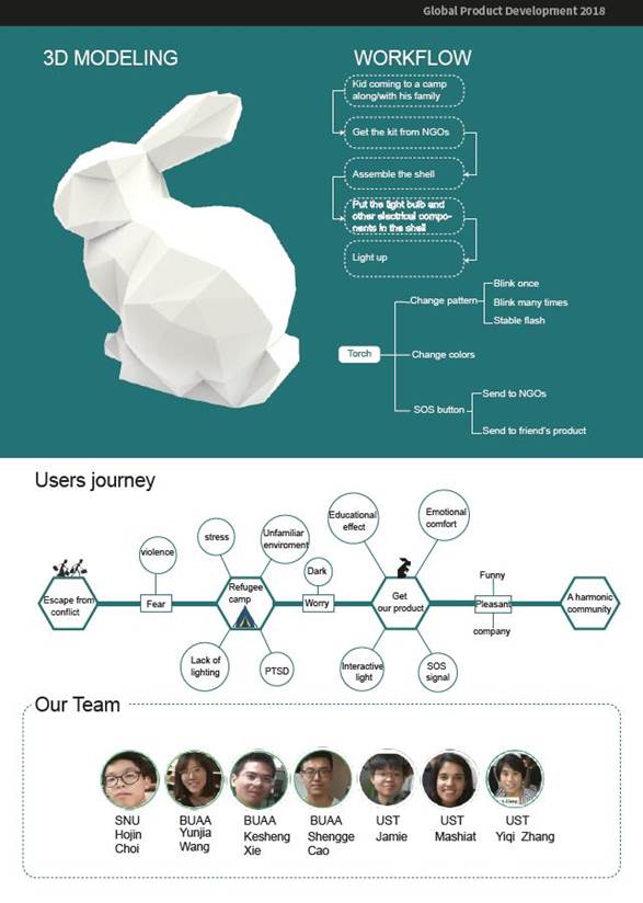 由于战争、气候变化、政治动乱等原因,全世界目前约有6850万人流离失所,其中超过51%的是18岁以下的儿童。从关心难民儿童的精神健康出发,REACT团队设计了一种难民儿童陪伴灯,作为难民儿童的日常玩具、应急设备以及与其他人互动的工具。
