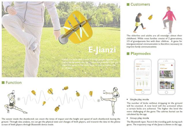 由于中国社会经济快速发展,代际间差异愈发显著,孩子与父母、爷爷奶奶之间的代沟成为了不可忽视的社会难题。为了解决这一问题,Real团队将传统游戏——毽子,通过近距离传输技术与手机等计算设备连接在一起,赋予老一辈的传统毽子更丰富、有趣的玩法,吸引年轻一代小朋友,从而通过游戏搭建孩子与父辈祖辈沟通的桥梁。另一方面,E-Jianzi(智能毽子)也能减少小朋友们的“屏幕时间”,让孩子们走出屋子,与家人一起锻炼玩耍。